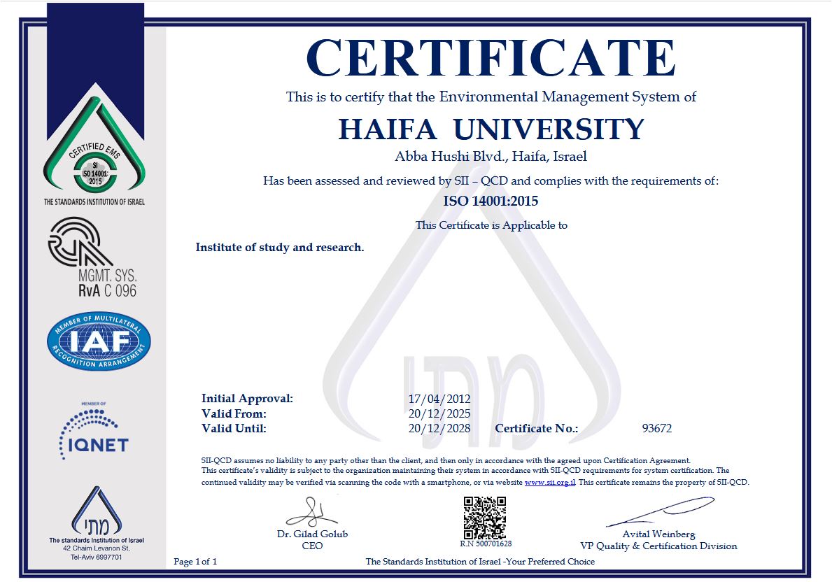 In an era of increasing environmental challenges, the University of Haifa recognizes the critical importance of sustainable practices, manifested as concrete actions to foster a more sustainable environment both within our organization and in the broader community.